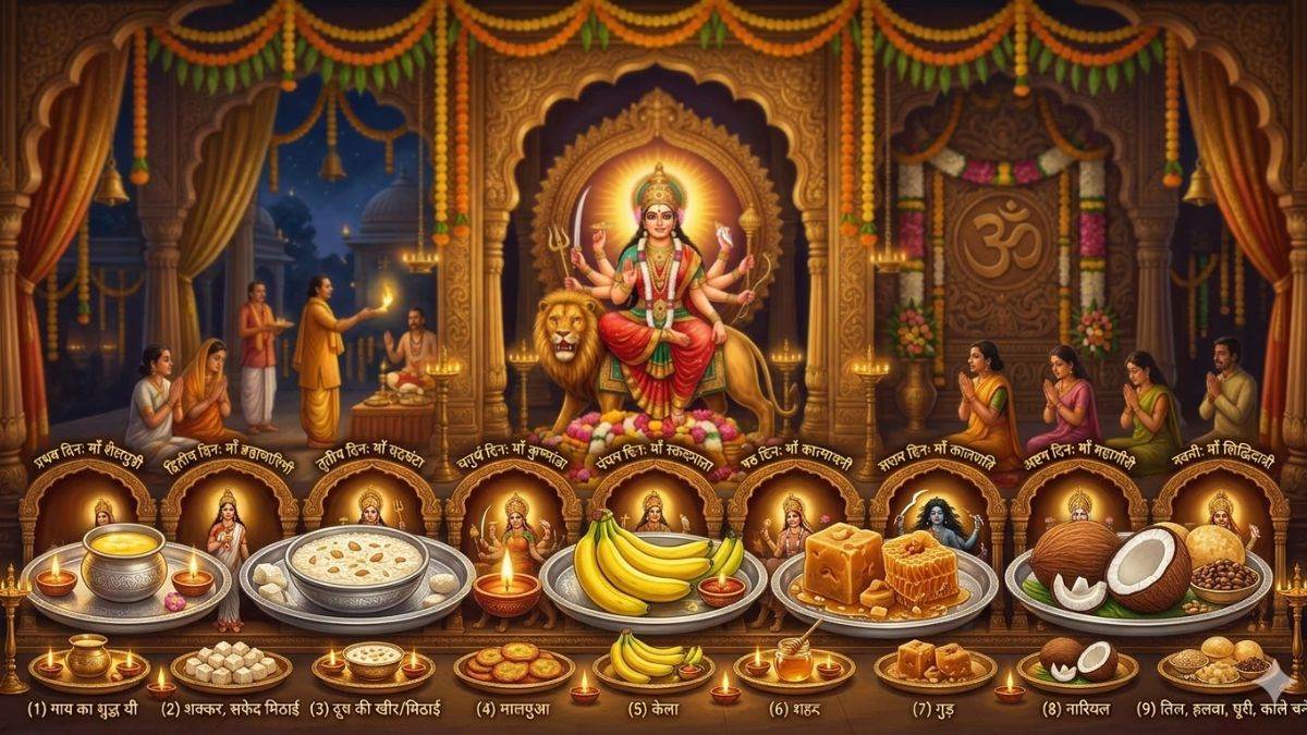 शास्त्रों के अनुसार, नवरात्र के दौरान यदि प्रत्येक दिन देवी के स्वरूप के अनुसार विशेष भोग लगाया जाए, तो साधक की सभी मनोकामनाएं पूरी होती हैं और घर में सुख-समृद्धि का वास होता है।